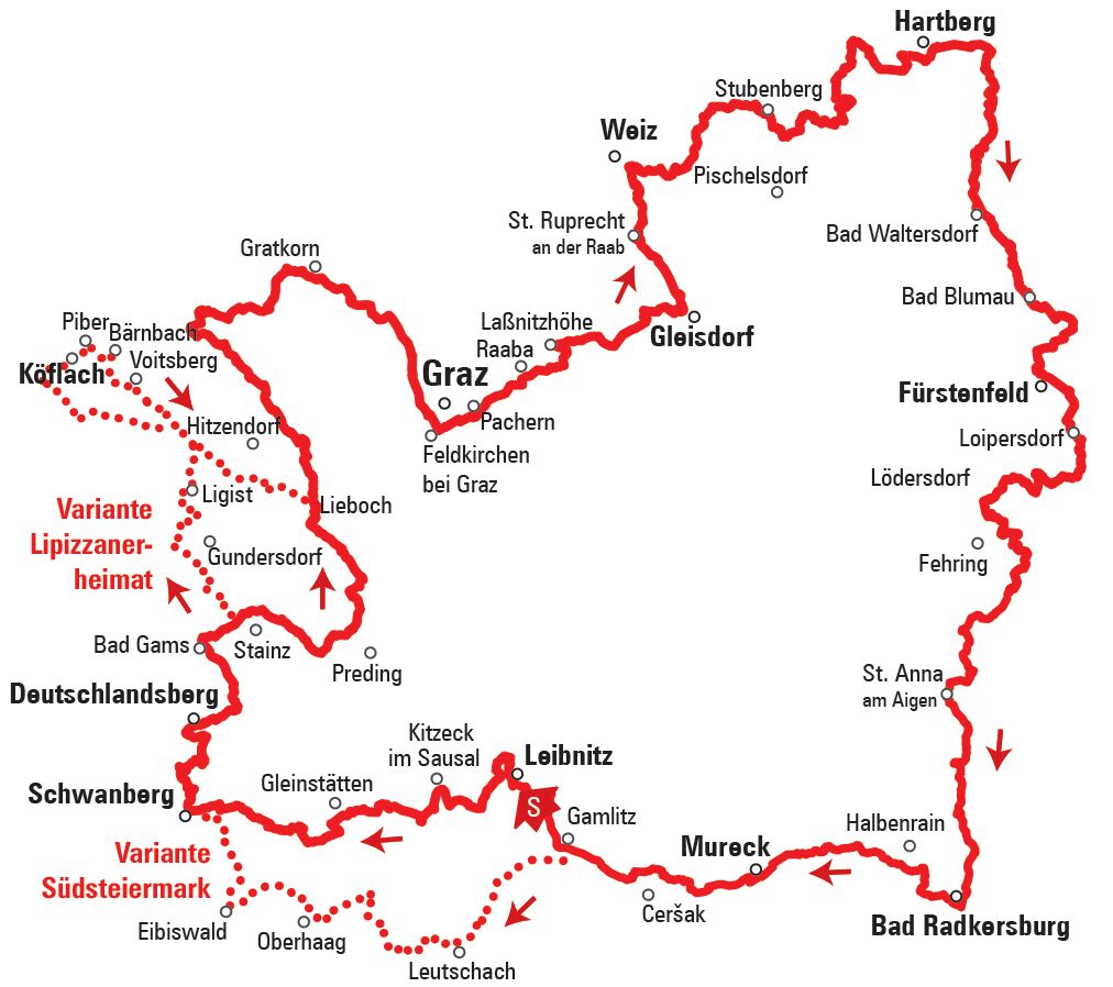 Start und Ziel: Rundkurs; als Start- und Zielpunkt empfiehlt sich Leibnitz.