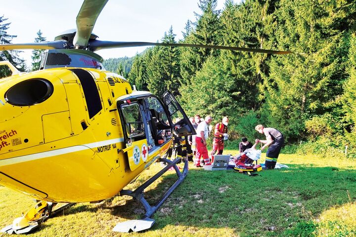 Der zuerst am Unfallort eintreffende First Responder des Roten Kreuzes erkennt den Ernst der Lage und fordert den Notarzthubschrauber nach. In der Zwischenzeit treffen Rettung, Polizei und Feuerwehr mit acht Männern ein. Kurz darauf landet auch Christophorus 11 in unmittelbarer Unfallnähe auf einem Hügel. Die Crew, bestehend aus Flugrettungsärztin Dr.in Helene Lercher, Pilot Michael Umschaden und Flugretter Josef Ehgartner, gelangt bis auf circa 50 Meter zum Unfallopfer. Mit Hilfe der Feuerwehr wird Ewald Darmann nach der Erstversorgung zum Notarzthubschrauber hinaufgetragen.