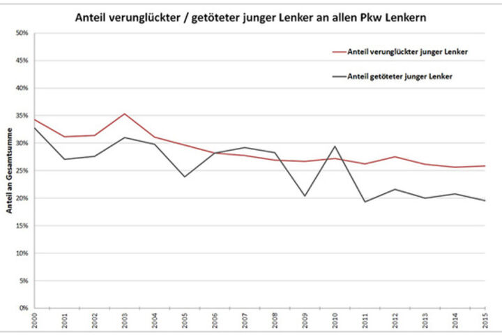 Die Einführung der Mehrphasenausbildung hat bereits viel bewirkt, denn die Zahl der getöteten jungen Lenker ist zwischen 2003 und 2015 um 70 Prozent gesunken. Zum Vergleich: Die Zahl aller getöteten Lenker ist in diesem Zeitraum um 50 Prozent zurückgegangen. Dennoch ist weiter verstärkte Bewusstseinsbildung für die Gefahren von Fehleinschätzungen der gewählten Geschwindigkeiten und riskanten Fahrmanövern notwendig. Darüber hinaus muss bei jüngeren Lenkern auf Ablenkung im Straßenverkehr ebenso wie auf die Gurtpflicht verstärkt hingewiesen werden. Mehr als 30 Prozent der getöteten jungen Lenker waren nicht angeschnallt.