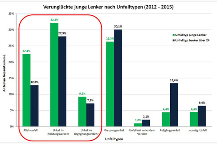 Laut ÖAMTC-Unfallforschung spielt bei vielen Unfällen junger Lenker die fehlende Fahrpraxis eine Rolle. Verkehrssituationen werden oft nicht richtig eingeschätzt und es kommt zu falschen Reaktionen. Außerdem wird nicht angepasste Geschwindigkeit bei jungen Lenkern doppelt so oft als Unfallursache vermerkt als bei älteren Lenkern und sie verunglücken deutlich öfter bei Alleinunfällen. Viele davon sind Abkommensunfälle, bei denen die Gefahr von folgenschweren Kollisionen mit Bäumen oder festen Bauten sehr hoch ist.