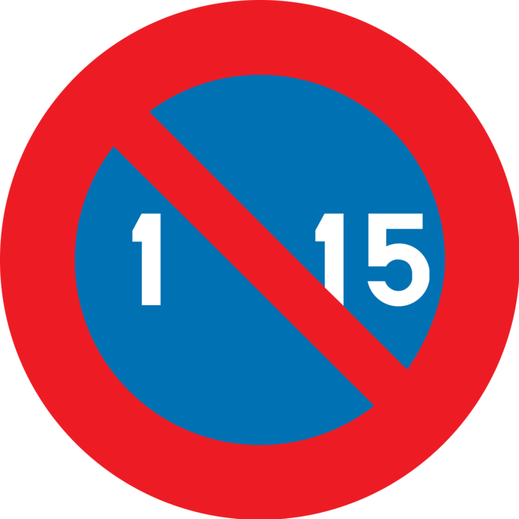Definiertes Parkverbot. Parkverbot vom 1. bis zum 15. des Monats.