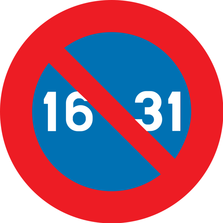 Definiertes Parkverbot. Parkverbot vom 16. bis zum Ende des Monats.
