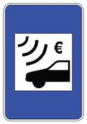Dieses Verkehrszeichen weist auf einen Abschnitt hin, wo eine elektronische Mautgebühr eingehoben wird.
