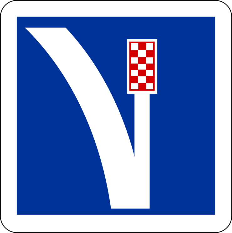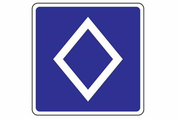 Eine weiße Raute auf blauem Grund kennzeichnet Fahrspuren, die temporär Fahrgemeinschaften (mind. zwei Personen im Fahrzeug oder nach Beschilderung auch mehr) oder reinen Elektro- und Wasserstofffahrzeugen (grüne Crit'Air-Plakette) vorbehalten sind.