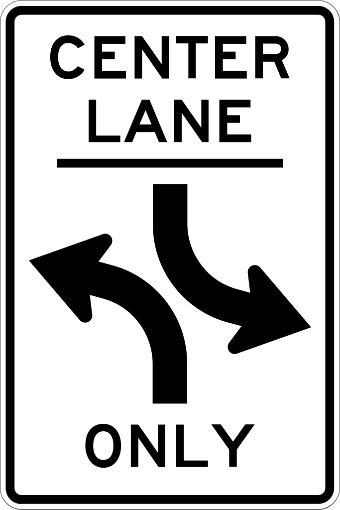 Dieses Verkehrszeichen besagt, dass die mittlere Spur in beiden Richtungen zum Linksabbiegen dient.