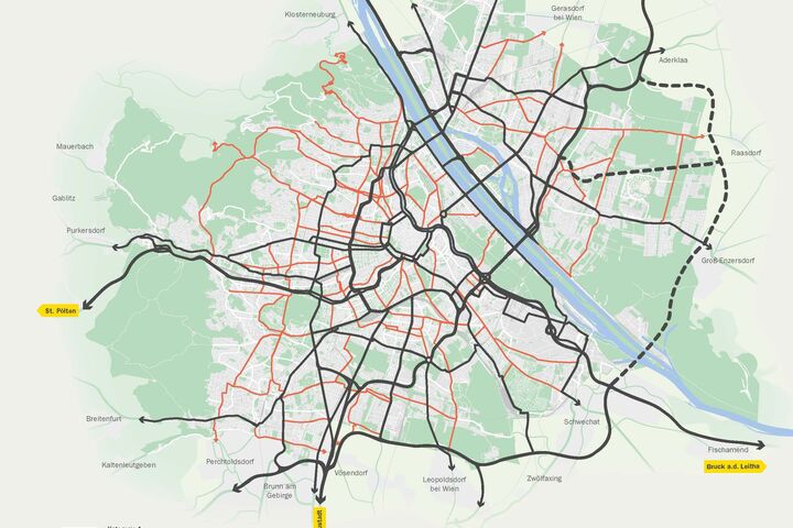 Dazu bedarf es eines klaren Gesamtkonzepts. Es sollten Lebensnetze für die drei wichtigsten Verkehrsmittel – Öffentlicher Verkehr (ÖV), Fahrrad und Motorisierter Individualverkehr (MIV) – festgelegt werden, welche mit ihren Hauptachsen auch ins Wiener Umland reichen.