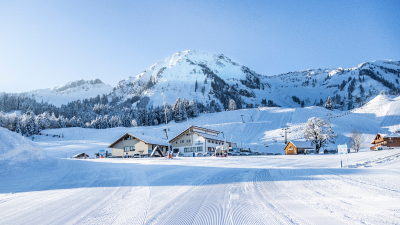 Die zentrale Lage im Bregenzerwald sowie das preisgünstige und familienfreundliche Kartenarrangement machen das Skigebiet mit insgesamt zehn bestens präparierten Pistenkilometern zu einem beliebten Wintersportgebiet. Der große Vorteil: Es ist alles vor Ort, was man für einen gelungenen Skitag braucht. Von Skischule über Verleih, Verkauf und Service ist alles vorhanden. Die gute Infrastruktur bietet zudem kurze Wege, sodass das Skiabenteuer direkt nach der Ankunft starten kann. Wer zuerst einmal alleine ein paar Versuche unternehmen möchte, kann die zwei Förderbänder und das Skikarussell mitten im Kinderland kostenfrei nutzen. Danach kann man sich – dank des freundlichen Kinderleitsystems – Schritt für Schritt im Gebiet vorantasten und an den Fahrkünsten feilen. Schettifuchs und Co. helfen dabei, gekonnt die Hänge herunterzufahren. Vom Pflugfahren auf der Igelrunde über sicheres Kurvenfahren am Bärenhang bis hin zu dynamischem Carven auf der Luchspiste – jede Könnerstufe findet die passende Abfahrt.